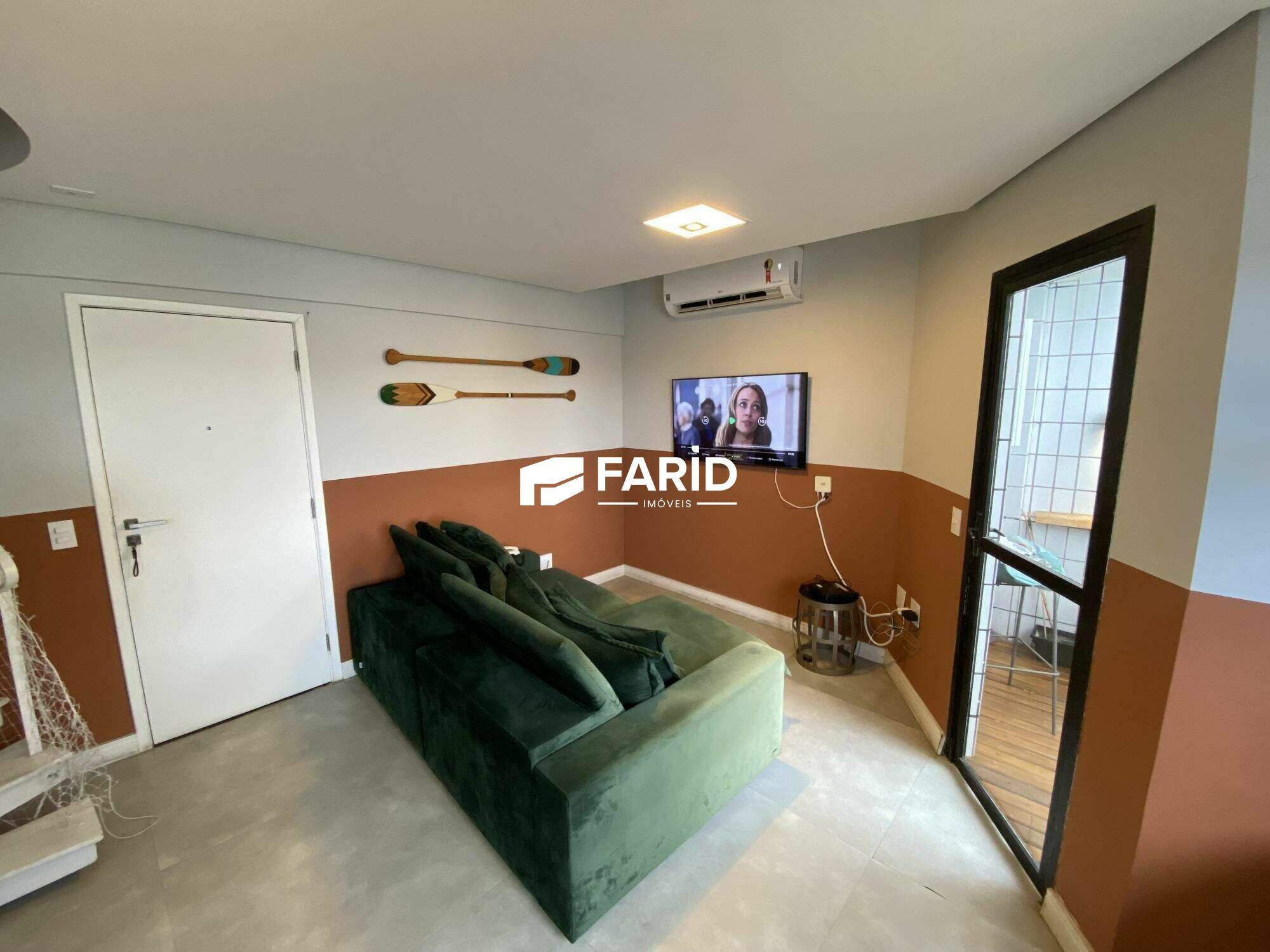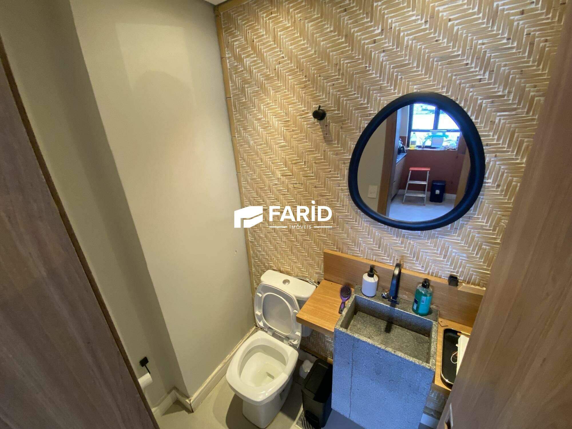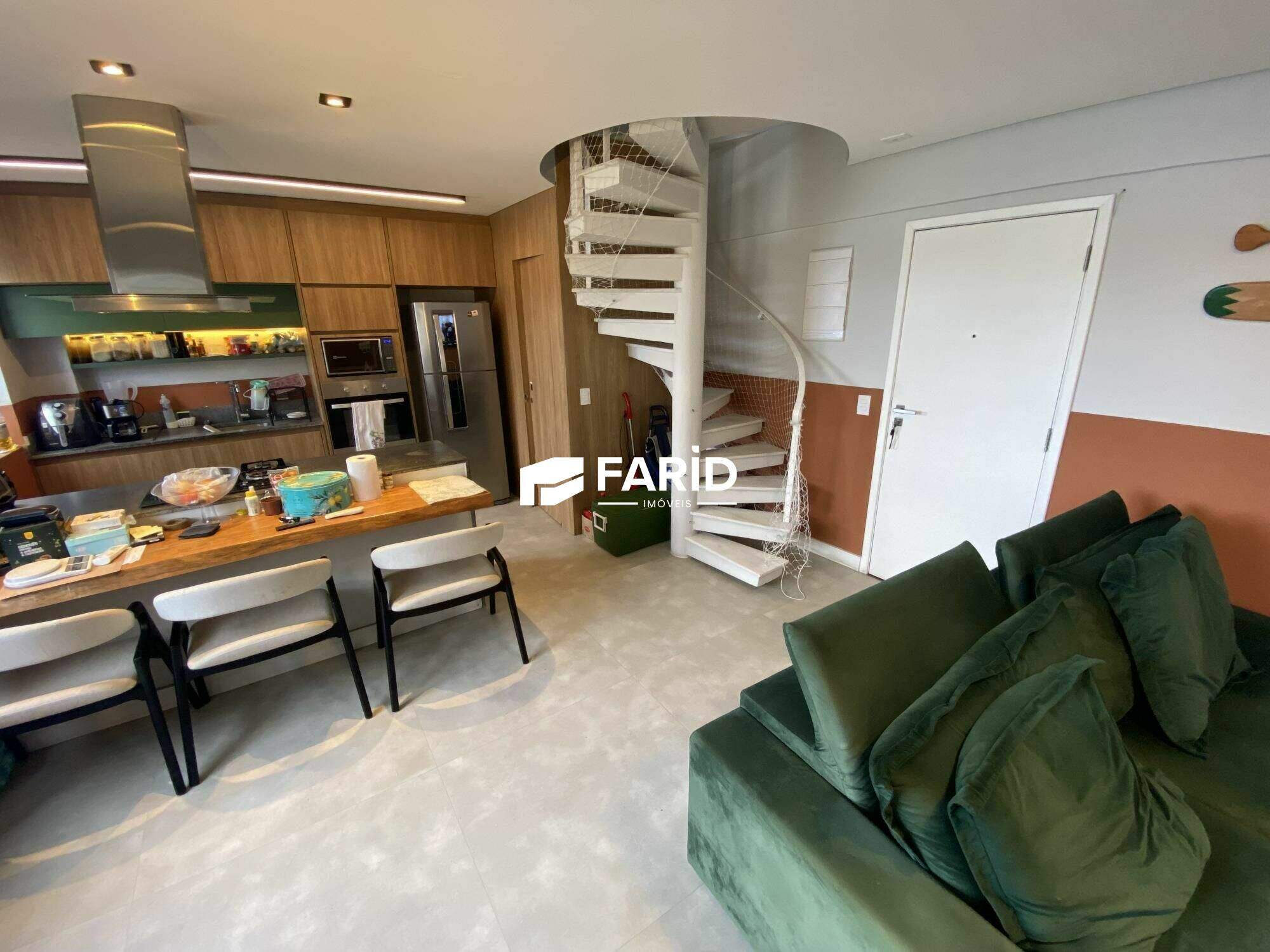 - sala de dois ambientes com varanda gourmet, cozinha americana e lavabo;