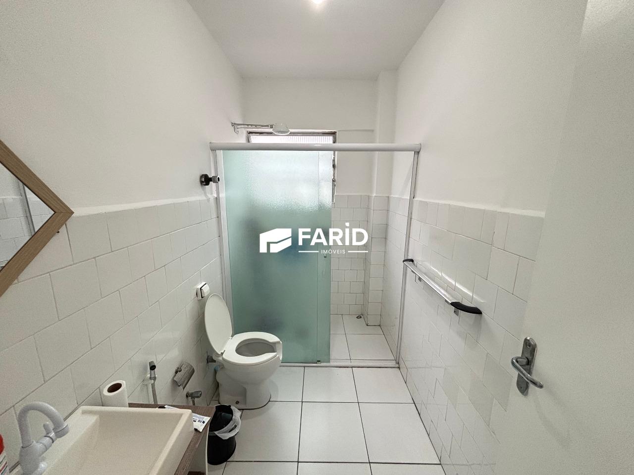 - banheiro com gabinete, vaso sanitário e chuveiro com box blindex;