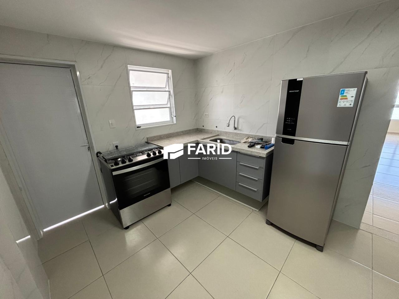 - 2 dormitórios (1 suíte), 3 banheiros (suíte, social e serviço), uma enorme sala que pode ser dividida entre dois ambientes (estar e jantar), uma cozinha também enorme e com armários embutidos, área de serviço e dependência completa (quarto e banheiro de serviço);