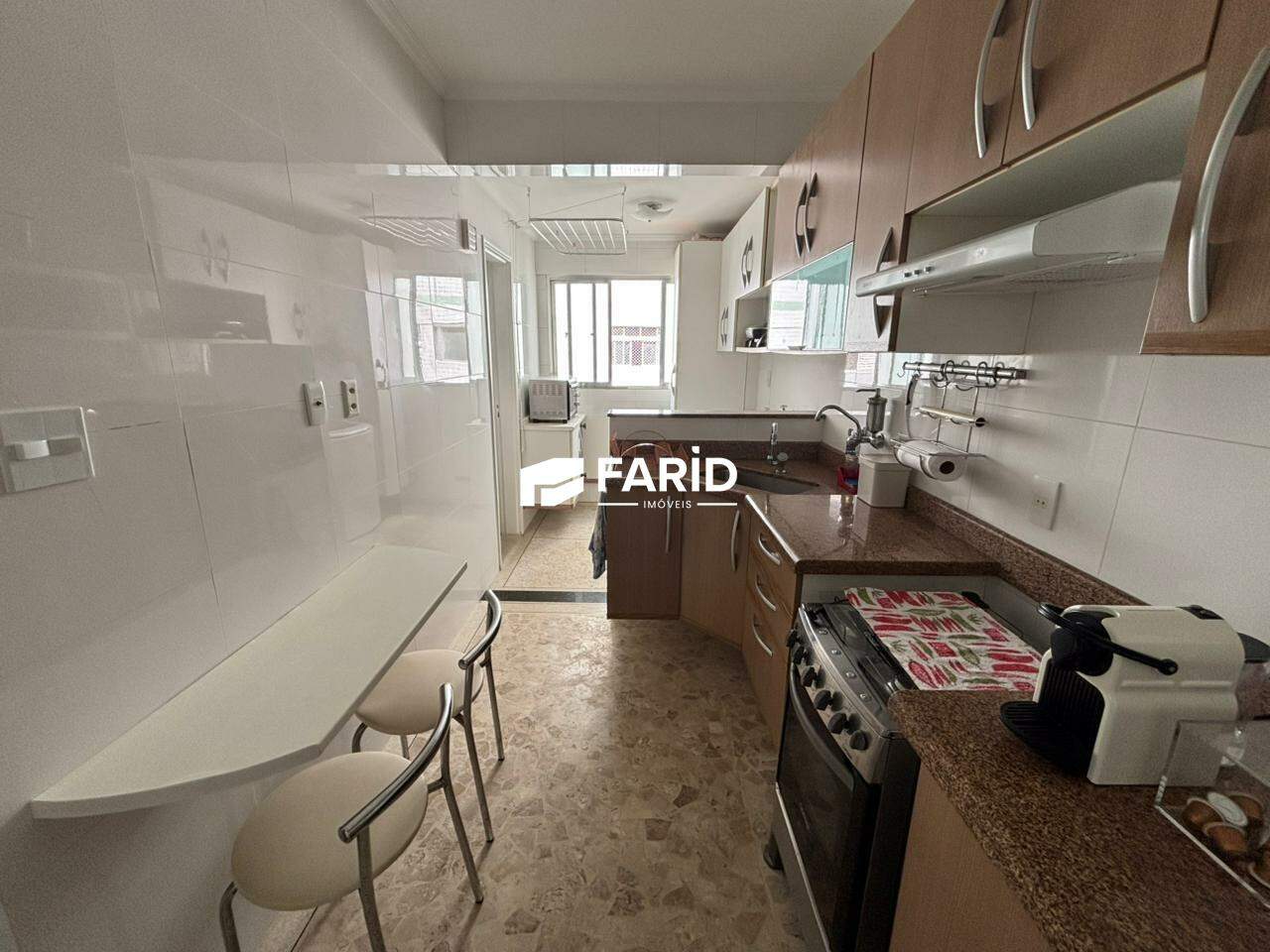 Belíssimo apartamento de dois dormitórios (sendo 1 suíte), 3 banheiros (suíte, social e serviço), sala para dois ambientes com varanda, cozinha grande e área de serviço.